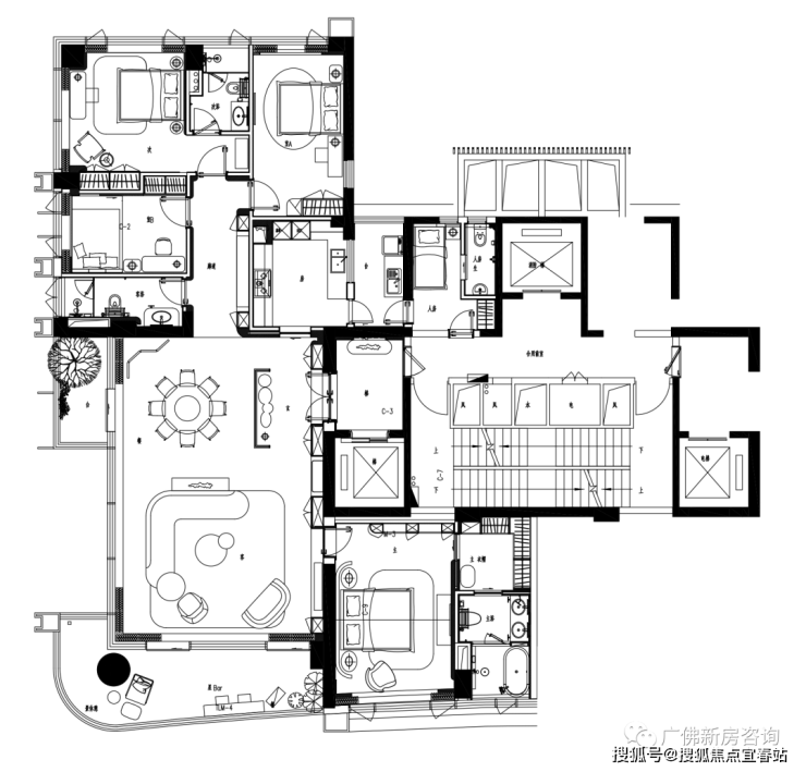 280㎡宽景雅居(四房两厅三卫配佣人房)