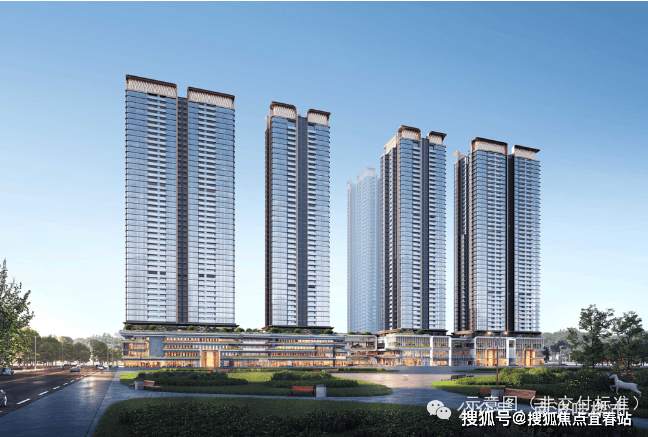 王座式塔冠,温润弧线设计,以及大面积通透LOW-E玻璃幕墙,辅以香槟金、内敛灰、雅致咖的品质铝板,匠呈恒久典雅立面。