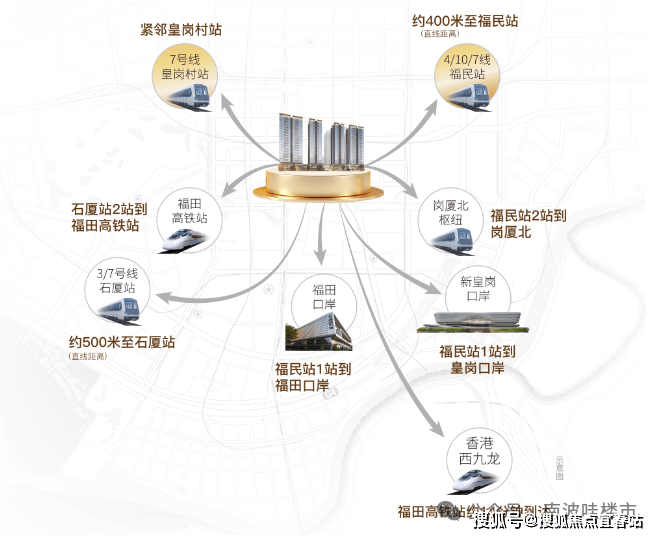 ·1站双口岸 ·2站福田高铁站 ·2站岗厦北枢纽 ·双地铁口 四地铁线