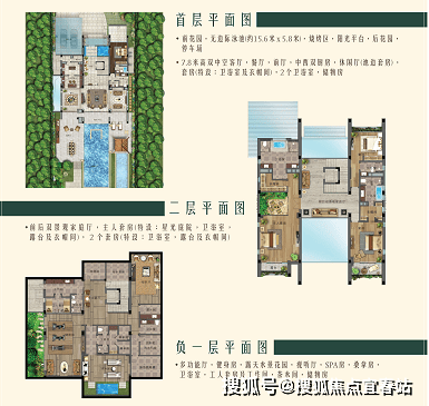 4室4厅6卫;地上二层,地下一层;单层净挑高4m;超大阳光平台;前入户停车花园,双车位;私家泳池花园层层叠加设计,配48㎡独立泳池,活动平台;烧烤区;前后花园设有独立入户门,业主可自由出入;步行2分钟即可到达沙滩海边。