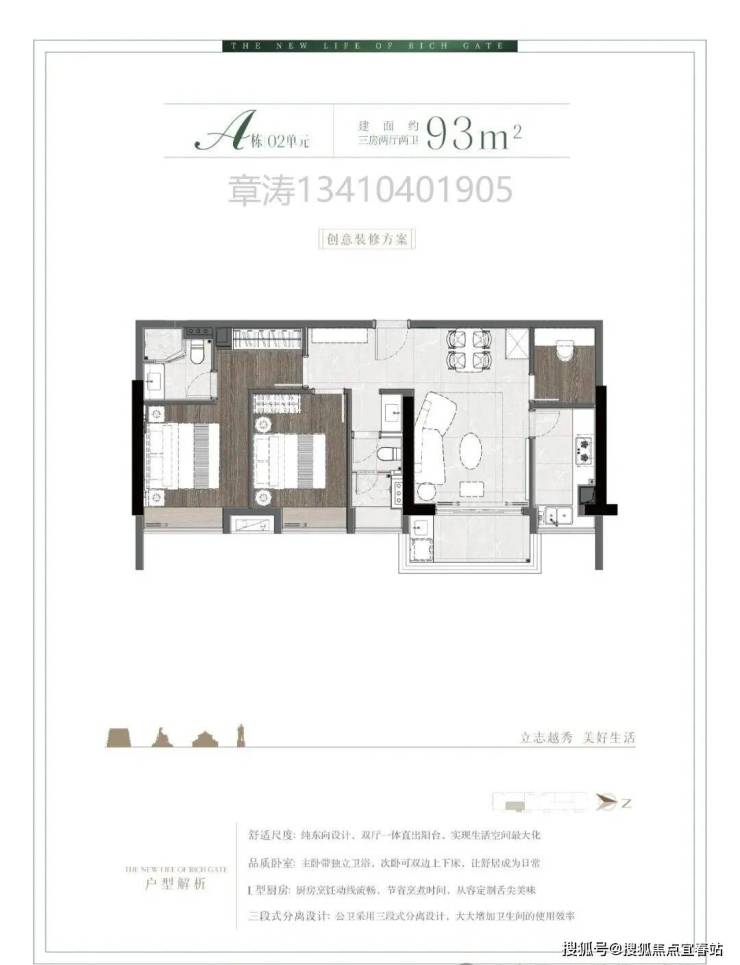 A栋02单元超高性价比93㎡三房户型: