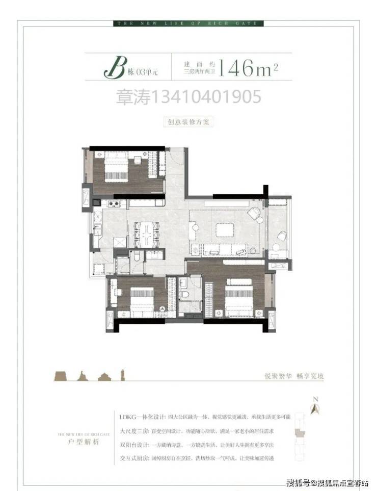 B栋03单元东西对流146㎡大厅大房三房户型: