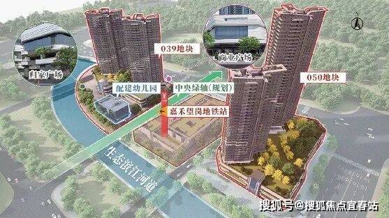 项目总共4栋楼,两个地块各两栋,其中有超高层的住宅,且做了抬高设计。050地块,两栋楼南北分布,1号楼136米,39层高塔楼设计,3T5户的设计,分别是3户87平,两户108平,2号楼,27层高也是塔楼设计,3户88平,一户西南向108平,一户东南向120平。039地块靠近幼儿园,两栋楼呈东西分布,靠近地块口的3号楼栋,2T5户,28层高,同样三户88平,一户西南向108平,一户东南向120平。4号楼比较靠近民房,2T5户,28层高,户型跟3号楼一样。
