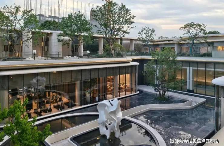 项目创新打造的约2500㎡立体下沉式会所已实景呈现,半开敞式空间将自然光引入私宴厅、健身房等功能空间,悬浮结构设计使其与周边景观浑然一体。