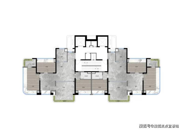 蓝灰色玻璃+仿石铝板+艺术涂料材质,穿插优雅线条,让建筑这张“脸”看起来更高级。One&Only酒店式门头。用雕塑体块、温润弧面和雅致线条,营造具有艺术格调的归家仪式感。