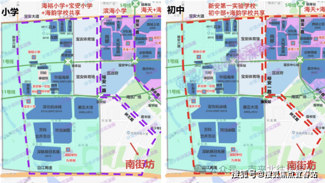 根据2025年宝安区教育局最新的学区划分,小学学区划分在海韵学校,海裕小学,宝安小学;中学学区划分在:新安中学第一实验学校,海韵学校。