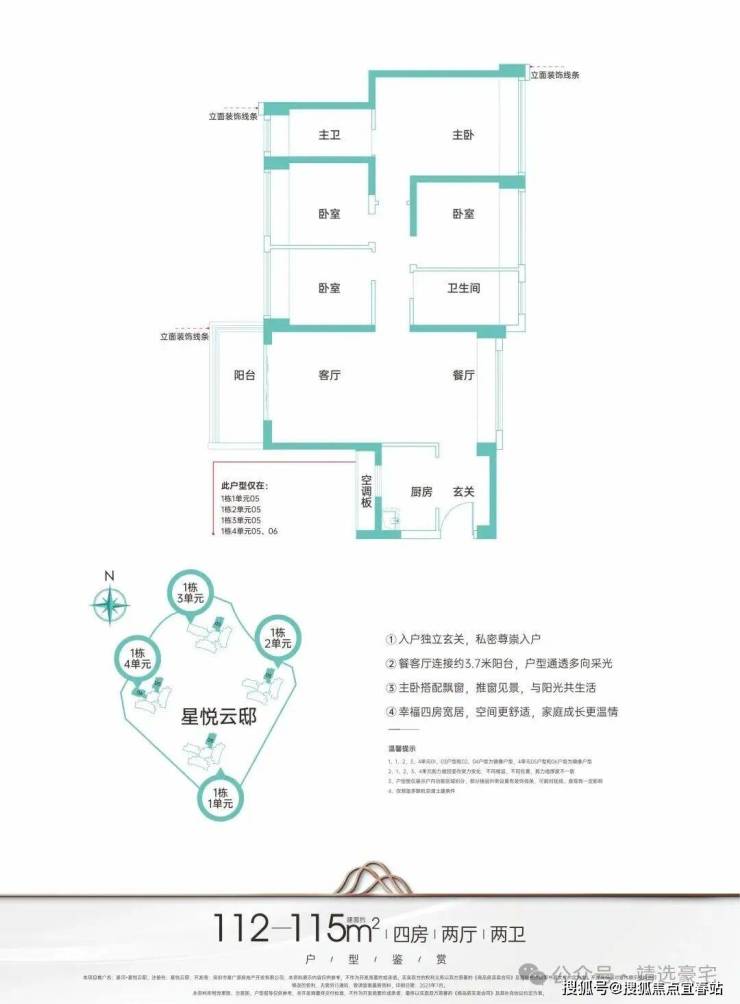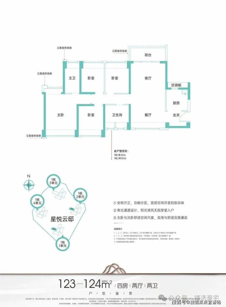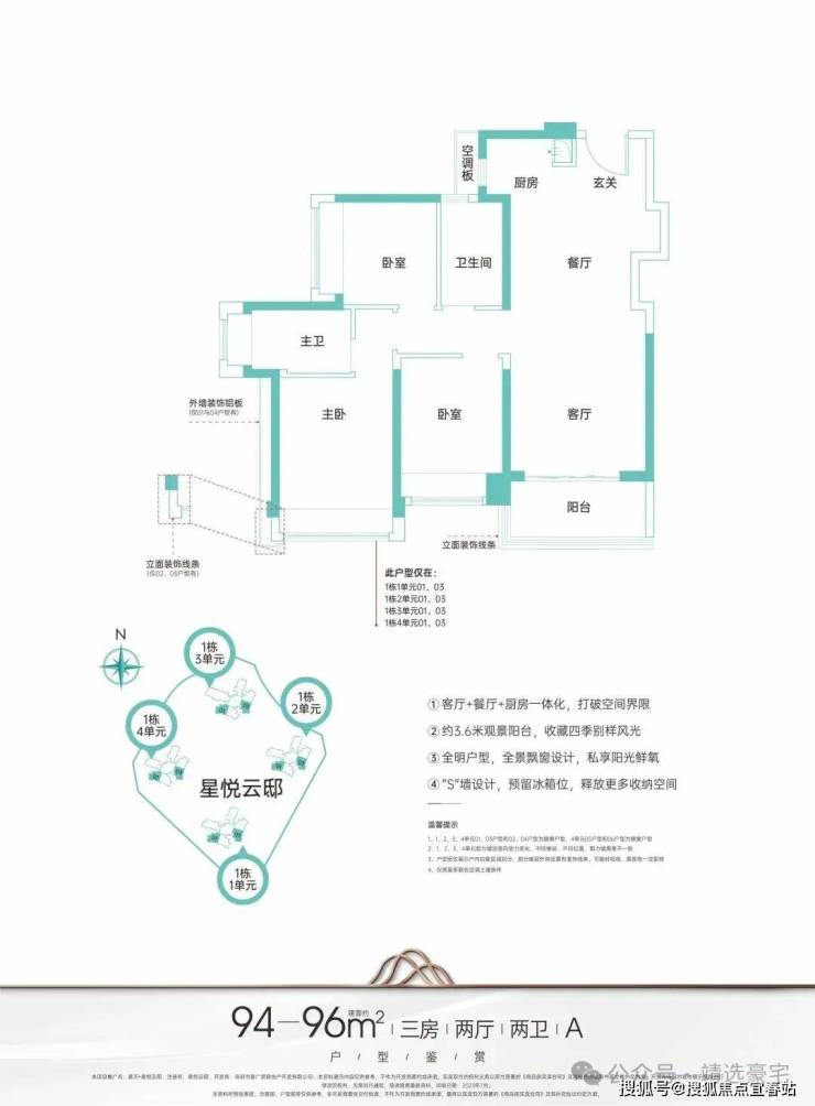 主力户型建面约95-124㎡臻品三至四房,启悦城市美好未来