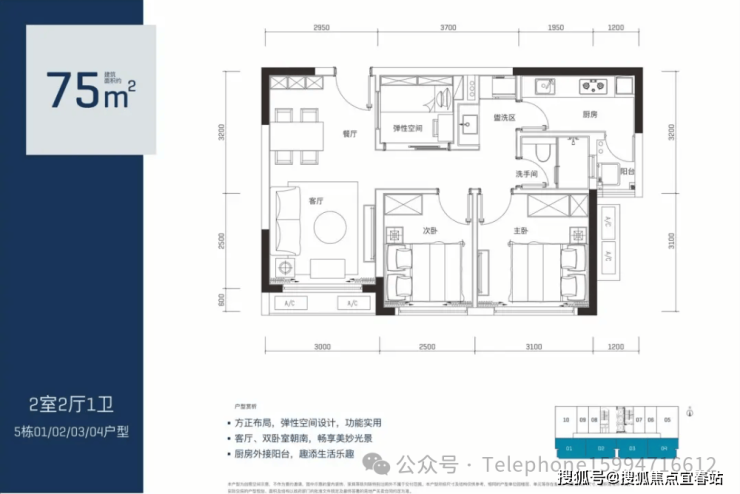 公寓户型建面约40-75-88㎡