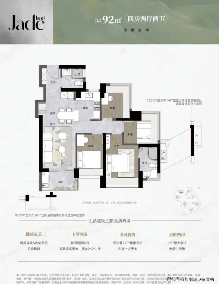 92㎡四房两卫:竖厅格局+四开间朝南,刚需家庭“一步到位”首选;