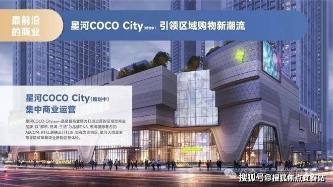 星河天地大社区规划引进的星河COCO City,是星盛商业运营的区域型商业品牌,以“都市、格调、生活”为品牌DNA,邀请国际著名的AECOM、RTKL联袂设计打造。高端休闲业态覆盖,一站式满足饮食、商务、娱乐、趣玩等需求。