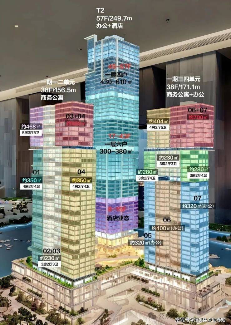 户型面积:230-700平方米,涵盖3-6房大平层,层高3.6-4米。