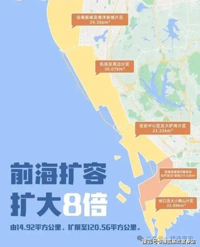 前海合作区扩大到约120.56平方公里,会展新城及海洋新城片区凭借双核规划优势,总投资超千亿元将直接撬动连通前海万亿规模经济带,将成为粤港澳大湾区新的经济增长极。