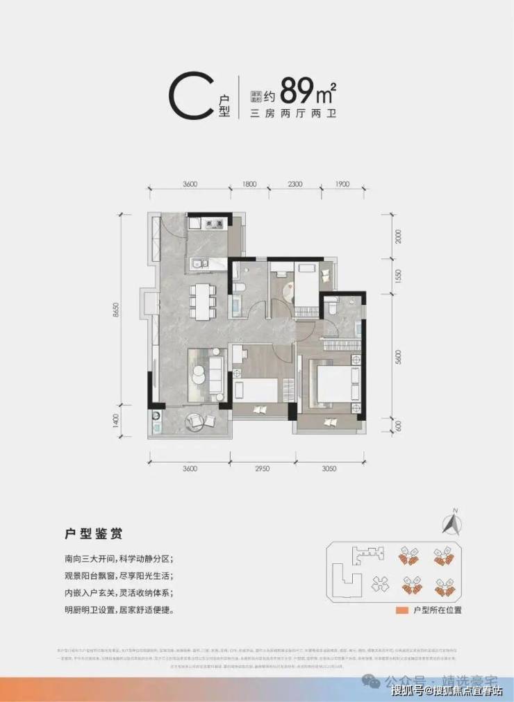 “N+1”高拓展,神户型设计:项目主推建面约85-120㎡的三至四房,采用极致的“N+1”高拓展设计,得房率高,功能性极强(如85㎡可做四房)。精准满足产业人才、多孩家庭对功能与景观的双重需求,是项目核心卖点。