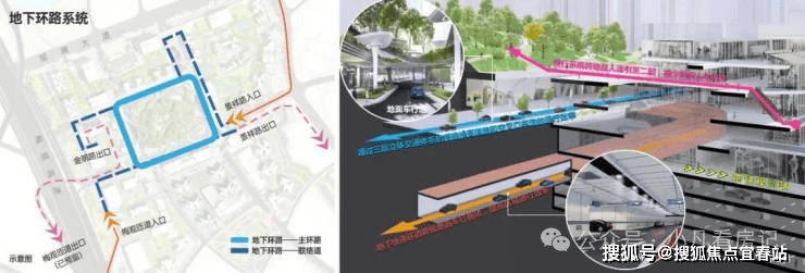 于外,不仅是 4 号线观澜站直连物业,观城还真金白银打造了与“前海地下路网”同级别的市级规划路网系统, 首创梅观高速直通小区,经由地下环道畅连各地块车库, 搭配整体「空中 + 地上 + 地下」的三重立体交通,实现业主的 高效出行 。