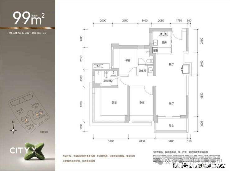 而项目约99平方米的户型,更是一个受市场欢迎的“全南向爆款大三房”户型,整体方正,格局规整,利用率极高,各个功能区域划分清晰,动静分离,动线合理,无论是日常起居还是家庭聚会,都能确保流畅舒适的空间体验。