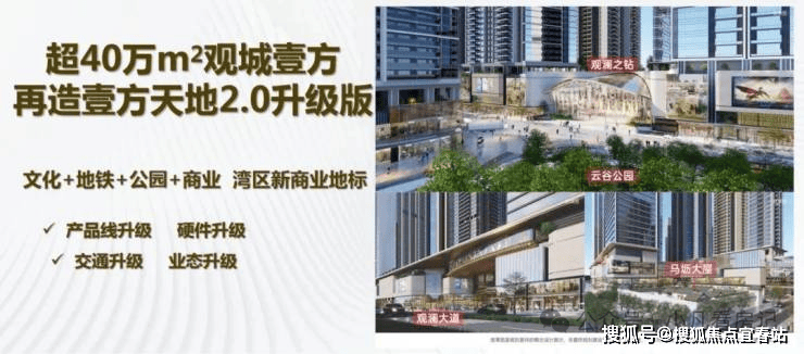 同时,观城还为片区带来了约 40 万 平方米的 “观城 壹方商业 ”,属于壹方 天地 2.0 版本,也是 继前海壹方城、龙华壹方天地刷新深圳商业版图后,鸿荣源以 “ 公园 + ” 主题 、同时巧妙地 融合 “ 观澜之钻 ” 地标建筑、马坜大屋打造 的城市级别 商业, 涵盖 特色文化商业街区 , 全龄段一站式休闲体验购物中心 。