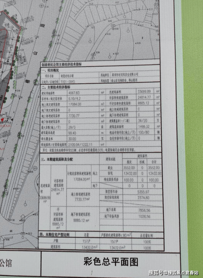 创意世纪公馆规划建设用地面积4067.83㎡,总建面约3.4万㎡,计容建面约2.5万㎡。其中,住宅约1.3万㎡,商业约3500㎡。