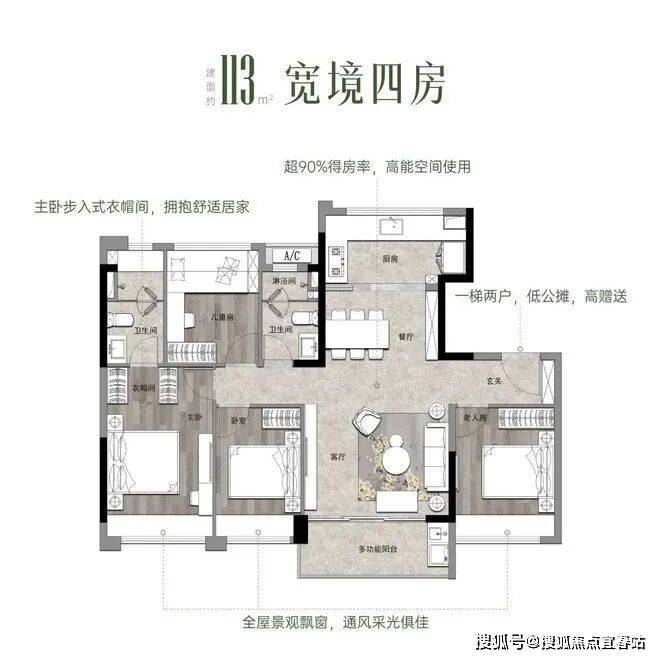 对于想要追求改善的购房者而言,建面约98㎡的四房户型足够你达成一步到位的终极目标。