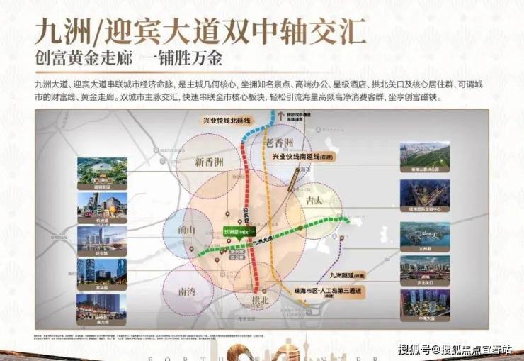 地段核心:位于珠海九洲大道与迎宾南路黄金中轴,近拱北口岸、港珠澳大桥口岸,南中珠城际 “九洲大道站” 规划中。