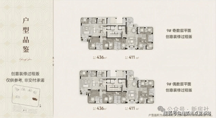 411㎡户型特点: 一层两户,3T2户独立梯厅互不扰; ·8*15m客餐厅,宽敞大气; ·动静分区,南北对流; ·10.7㎡全赠送共享平台6.6m层高可 复式搭建; ·工人梯独立动线,保障豪宅私密性; ·主卧270°景观转角飘窗