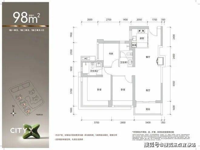 【建筑面积98㎡3房2卫】