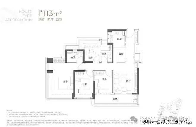 除了138㎡楼王单位外,项目目前热售的还有约113㎡的四房两厅两卫。
