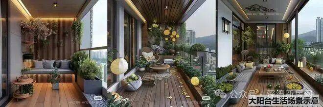 · 连接客厅的宽景阳台长约6米,这个尺度能够满足很多生活需求。除了日常晾晒以外,阳台的另一边可以作为植物小花园,或者设置卡座观景台等等;