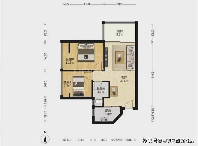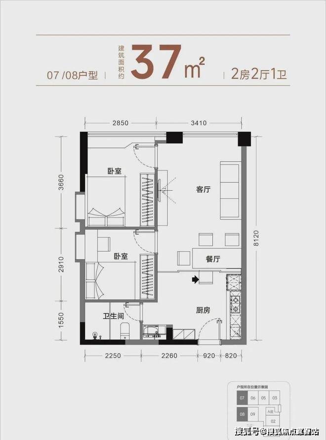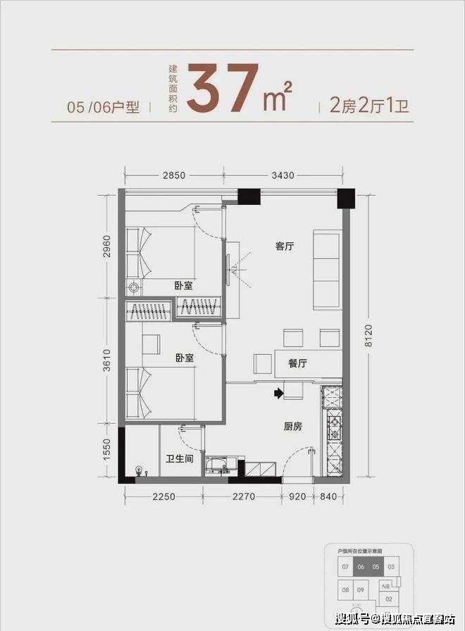 【产品面积】约37㎡小两房(实际套内使用面积接近54㎡)