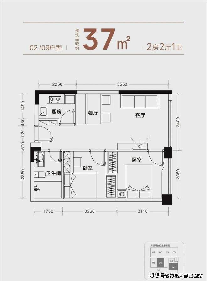 37平02-09户型格局基本一致,套内面积均约54平,部分不同点仅是镜像、卧室为方正矩形,但价格基本相近,总价在530万左右。