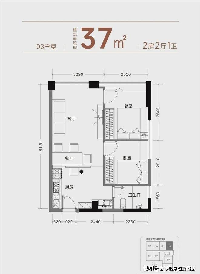 此次爆出的开发商一手保留单位,建筑面积约37平2房,实际套内使用面积约54/64平。
