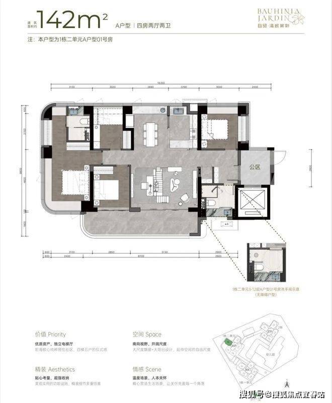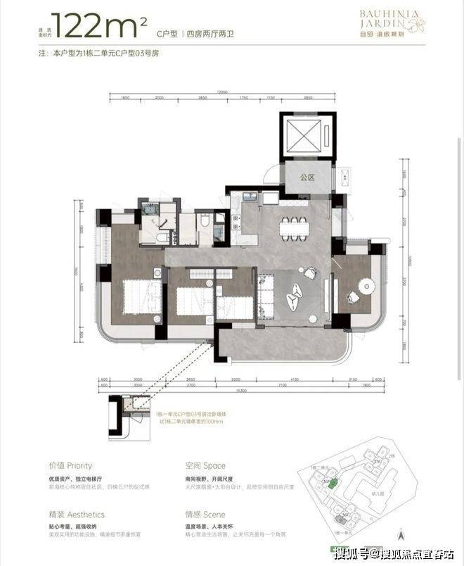 湾啟紫荆位于前海妈湾听海大道,占地约1.5万㎡,住宅建面约6.6万㎡,容积率5.14,共有三栋住宅组成,层高36-37F,共485户,车位595个,车位比1.1.2,4梯5户,主推约96㎡稀缺三房、111㎡3+1房、122㎡四房、142㎡四房。户型设计了大客厅、宽景阳台、阔景飘窗等,拥有山海河多重景观资源,计划品质精装交付。户型采用建筑新规设计,户户大阳台,4梯5户,分布式电梯设计,独立电梯厅。