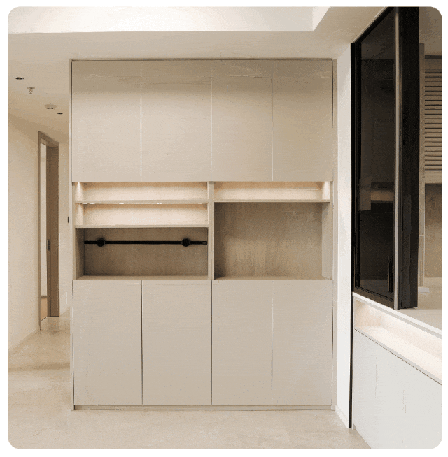 柜体灯带:玄关柜、餐边柜、衣柜都装感应灯,晚上找东西不摸黑