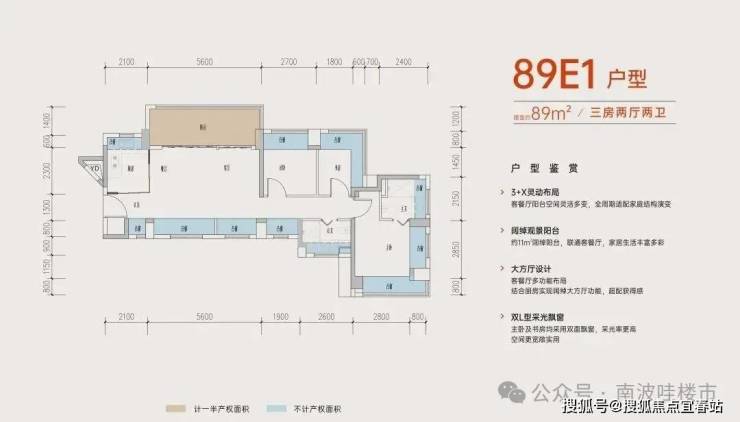 新规后飘窗深度从60cm增至80cm,全赠送!润臻园把能做飘窗的地方全做了,89平E户型单飘窗就送18㎡: