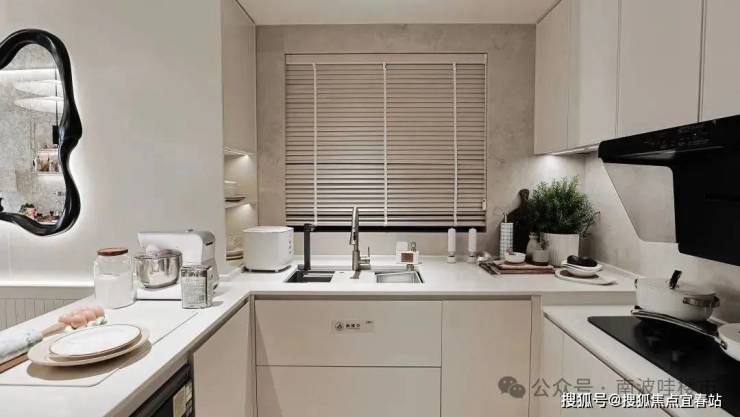 厨房飘窗:定制L型橱柜,碗碟收纳量翻倍