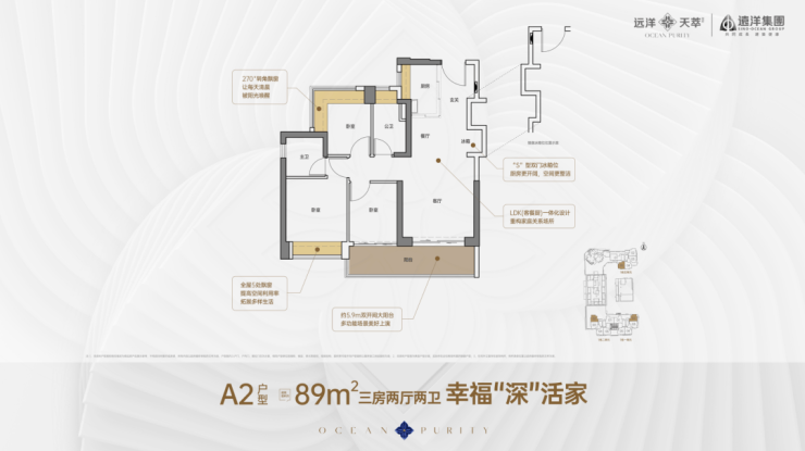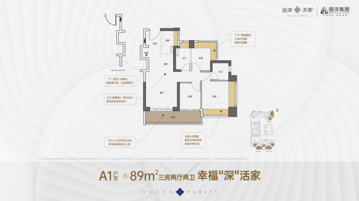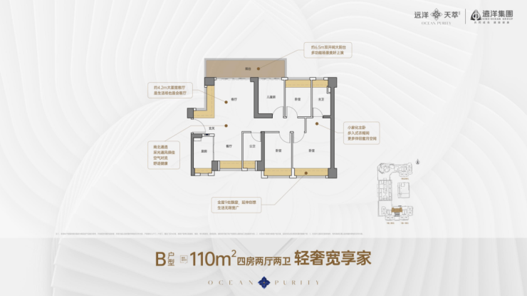 远洋天萃世纪总建面约11.85万㎡,占地约1.36万㎡,绿化率40%,规划4栋住宅、1栋写字楼及1所幼儿园,共615套可售商品房,圈层纯粹。主力户型涵盖89-128㎡,主打89㎡三房、110-128㎡四房,梯户比3梯5户,LDKB一体化设计,多飘窗布局,精装交付,适配刚需、刚改多元需求。