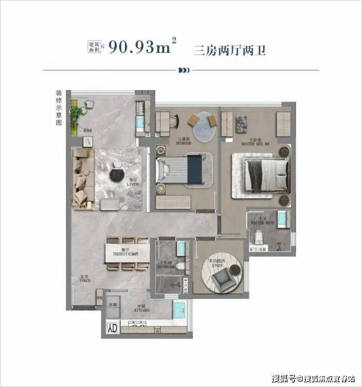 •灵动空间:三房两厅设计,合理布局,动静分离,满足家庭成员多样化的生活需求。