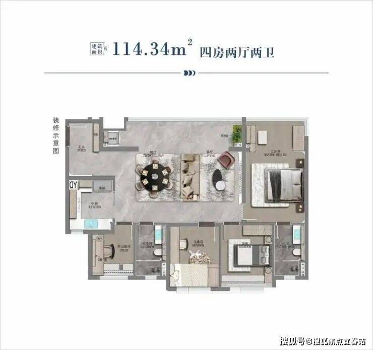 •通透明亮:开放式客厅、餐厅连通阳台,尽享阳光与景观,让生活与自然零距离。