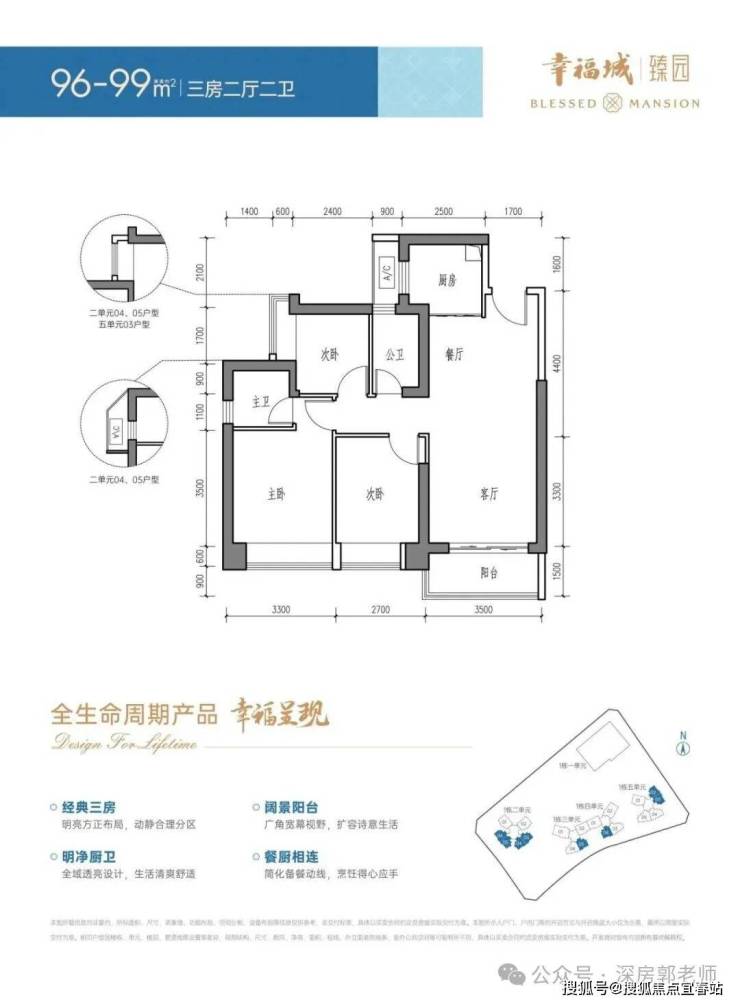 面积:96-99㎡三房两厅一卫