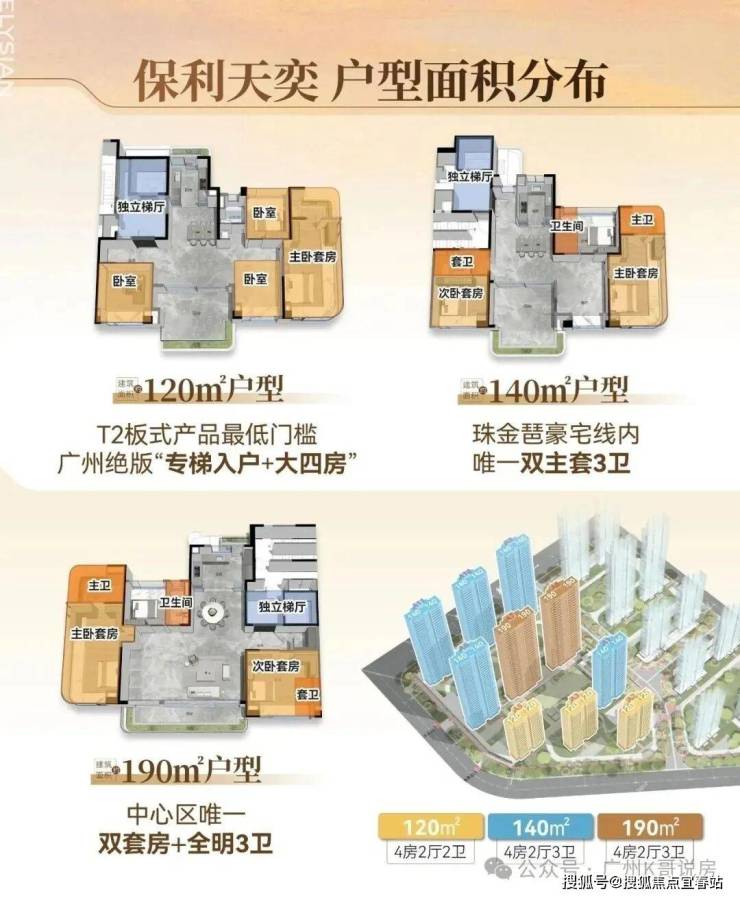 以往中心区T2板式产品,最小140㎡起,而身处琶洲CBD的保利天奕,门槛低至120㎡。