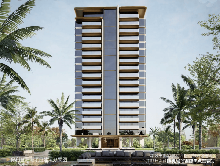 外立面是豪宅标配的玻璃幕墙+铝板,做了弧度,很有线条感。