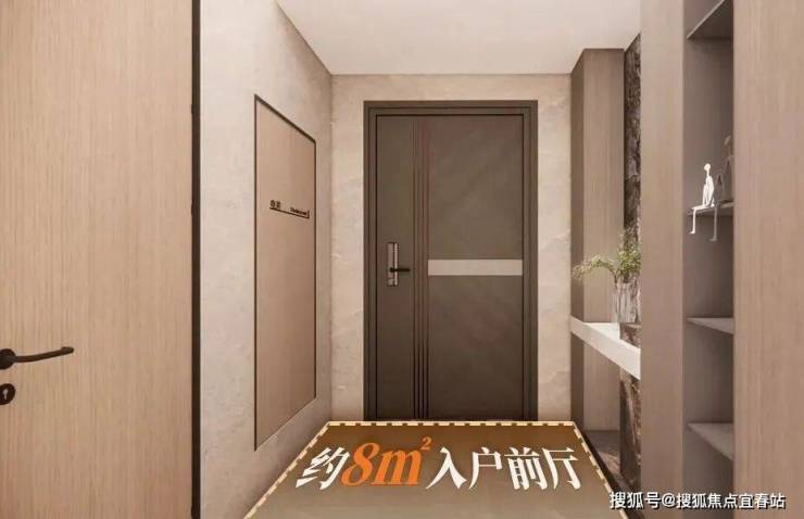 打开专梯,入户前厅更是达到约8㎡!相当于一个次卧的尺度。