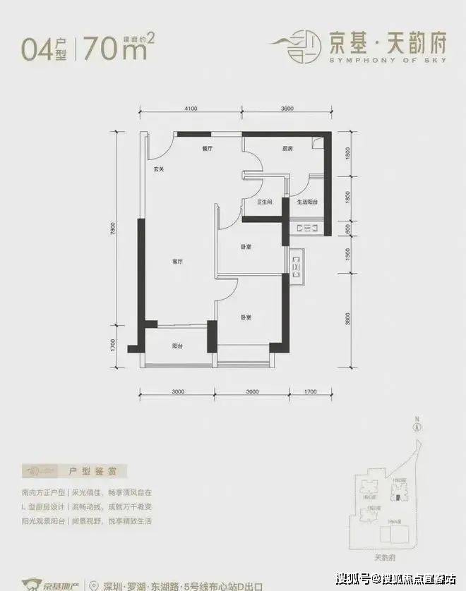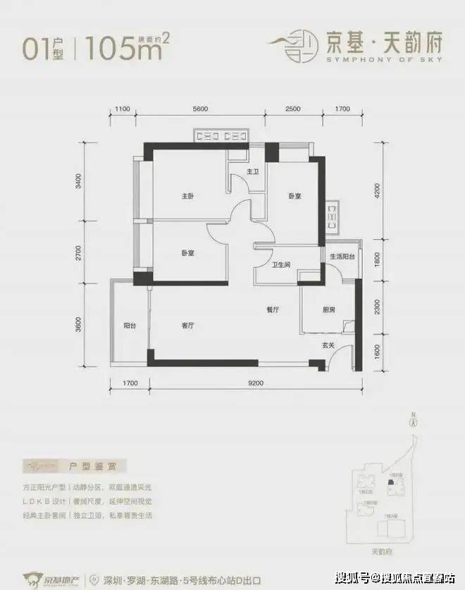 主要由2栋62层的回迁房单元、1栋62层5梯7户的商品房、1栋52层的商务公寓单元,以及一所幼儿园所组成。其中京基天韵府对外发售的商品房,就集中在1栋B单元,包含了7种户型,共计244户房子,停车位995个。