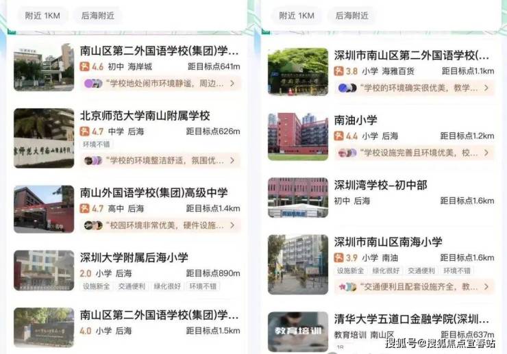 项目周边有北师大附小,南山外国语学府学校,南二外学府中心南油小学,深圳大学附属后海学校,北师范大学附中,深圳湾学校等