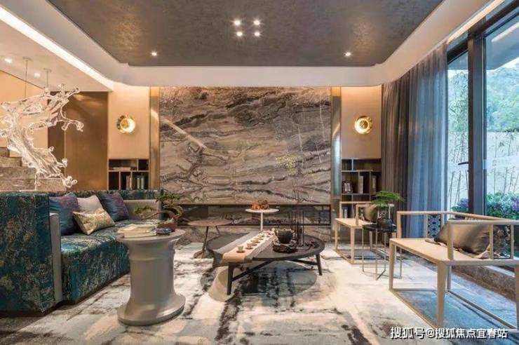 Ø 新中式:新中式风格院墅产品,外立面全干挂石材;
