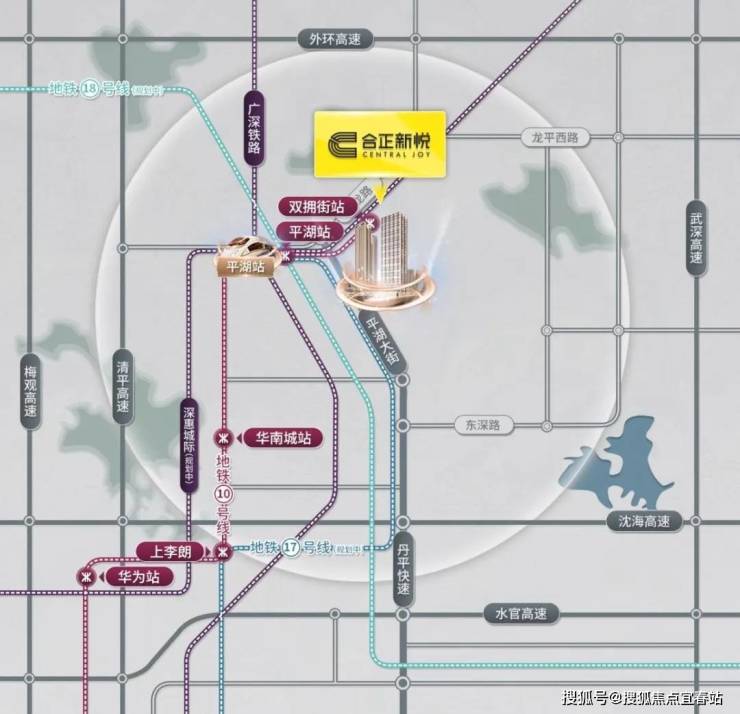 合正新悦所在片区交通便利,距离平湖枢纽站仅约800米(据百度地图测量,仅供参考),周边还有已经开通的地铁10号线平湖站,规划中的17号线新南站、18号线,三地铁环绕,轻松通达全市各区。