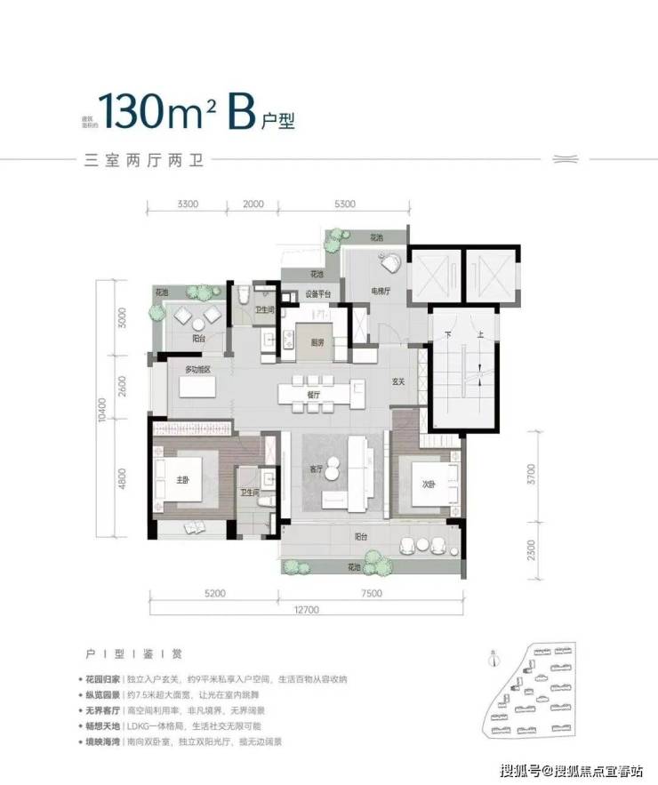 如 123 平米舒适三房,有独立入户玄关、约 7.4 米宽景阳台、LDKG 一体格局等亮点;