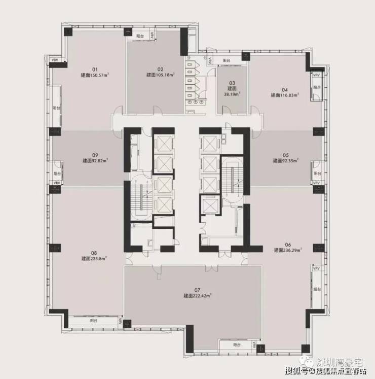 户型面积:建面93/103/116/150/223/235㎡(三至四房)