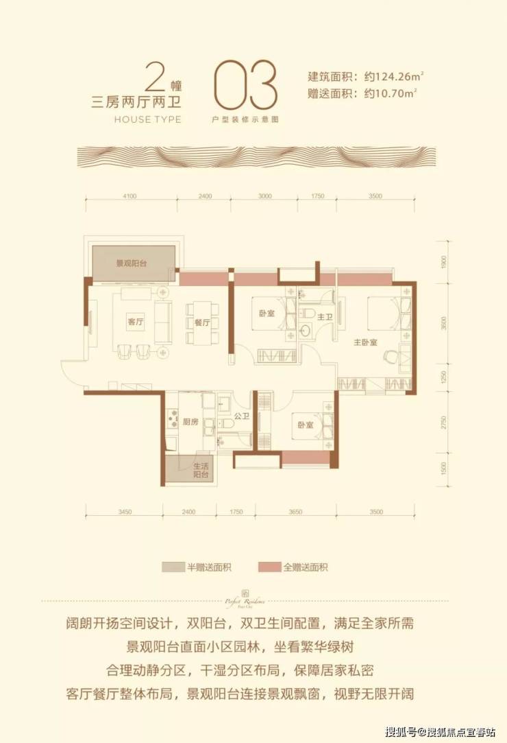 富逸城臻誉 03户型,3室2厅2卫,124.24㎡(建筑)