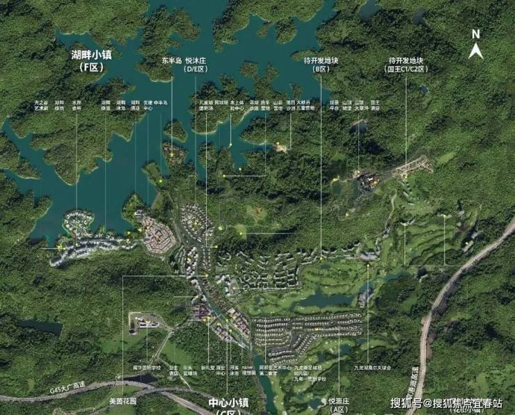 2.湖山自然:高尔夫球会、游艇码头、水上体验中心、湖山栈道、观景平台、落日沙洲、大峡谷