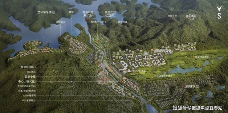 项目重点建设中心小镇C区、艺术聚落F区、伴山美地B区三大园区,并串联现状山地游乐、国王酒店、欧洲小镇与集散中心。
